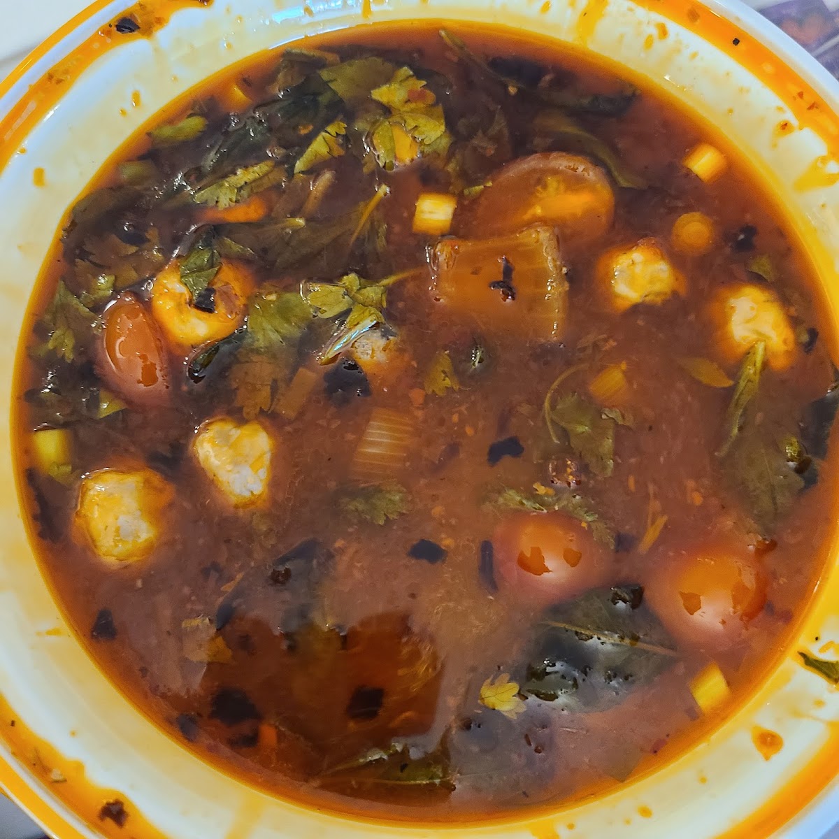 Green Curry Noodle Soup with Chicken Crab Ragoon Sweet and Spicy Shrimp